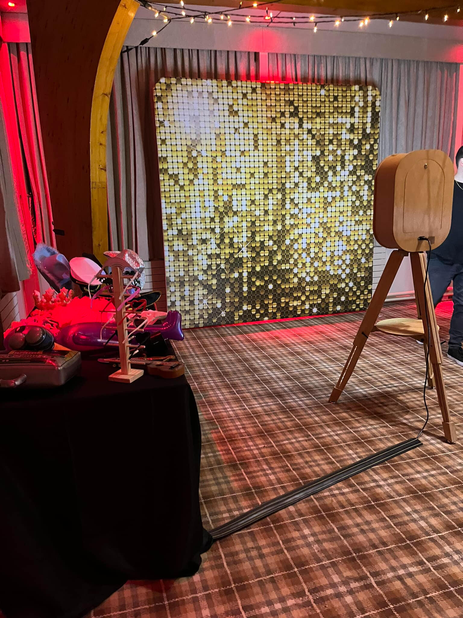Why choose us? Our vintage selfie pod blends timeless elegance with cutting-edge technology, making it more than just a photo booth – it’s the ultimate showstopper for any event. For a classic touch, pair it with our printer to offer unlimited prints and personalized keepsakes your guests will cherish.Take it up a notch with our stunning glittery sequin backdrop, adding a touch of sophistication and privacy while creating the perfect setting for unforgettable photos. With Snap Events, your celebration becomes a stylish, interactive experience that your guests will rave about!